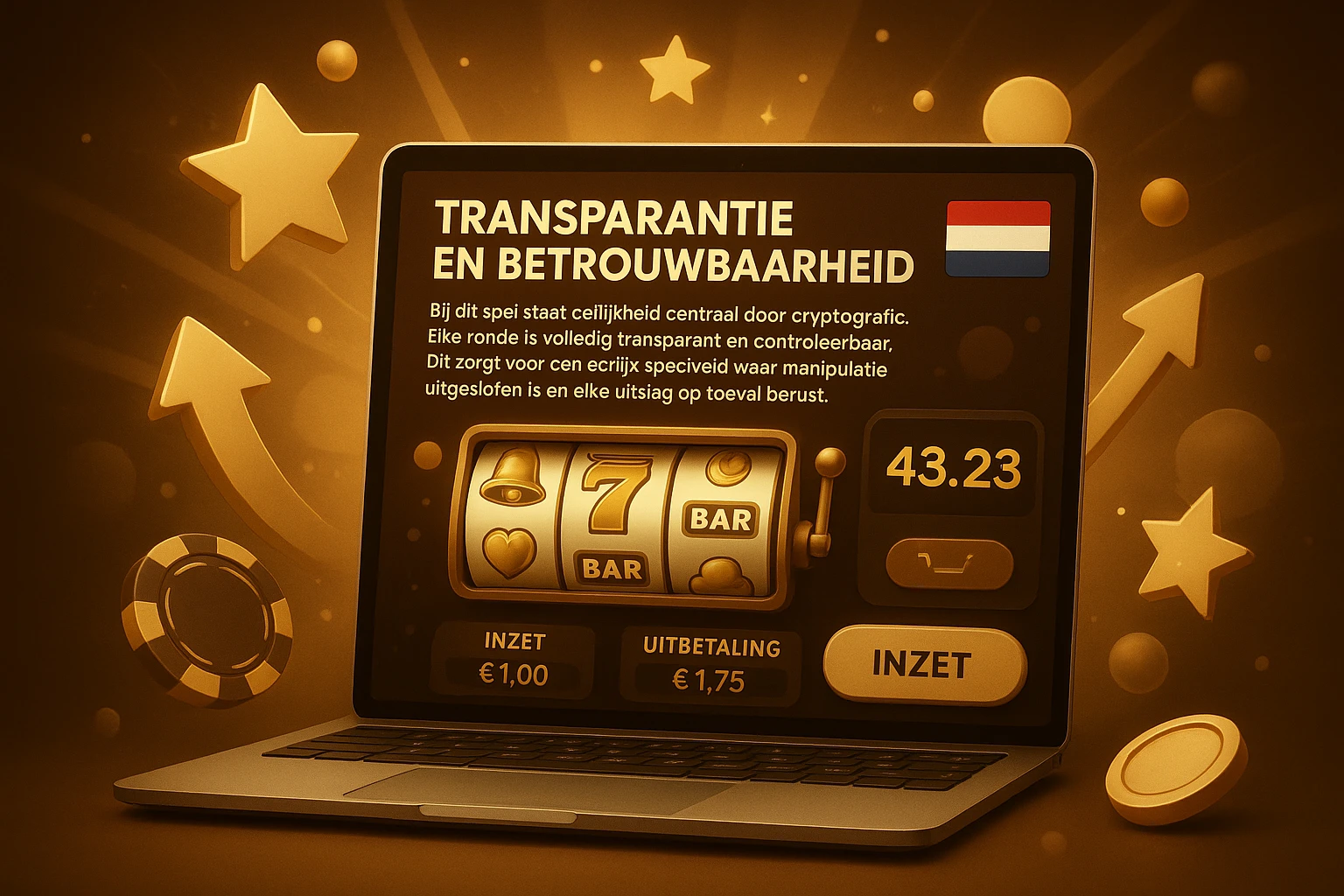 Veiligheid staat centraal dankzij het Provably Fair systeem. Elke ronde wordt gegenereerd met cryptografische algoritmes, waardoor spelers zelf kunnen verifiëren dat de resultaten volledig willekeurig zijn en niet gemanipuleerd kunnen worden.
